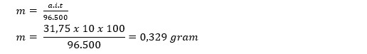 Dengan mengingat bahwa 1 Colulumb = 1 ampere detik, maka hukum Faraday I dapat dijabarkan menjadi