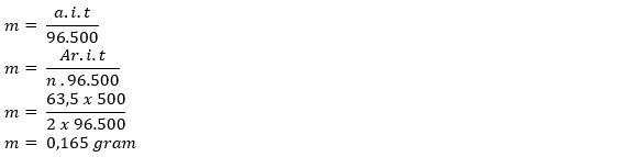 - tentukan massa ekuivalen Cu (Ar Cu = 63,5)