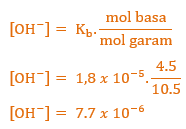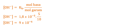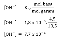 Berikut ini contoh penyelesaian soal dalam menghitung pH larutan penyangga yang penyusunnya dari basa lemah dan basa konjungasinya.