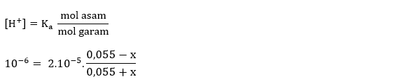 Agar diperoleh pH = 6, berarti [H+] = 10-6