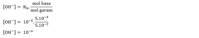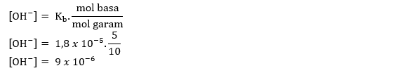 Sebanyak 50 mL larutan NH4OH 0,1 M dicampurkan dengan 100 mL NH4Cl 0,5 M. Jika Kb NH4OH = 10-5, tentukan pH campuran tersebut