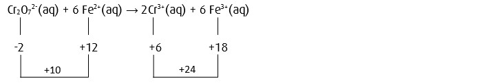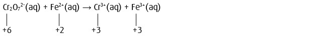 Cr2O72-(aq) + Fe2+(aq) → 2Cr3+(aq) + Fe3+(aq)