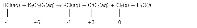 2HCl(aq) + K2Cr2O7(aq) → KCl(aq) + 2CrCl3(aq) + Cl2(g) + H2O(l)