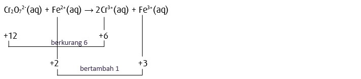 Cr pada ruas kiri (K2Cr2O7) = +6 dan pada ruas kanan = +3
