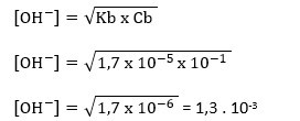 pOH = – log [OH] pOH = – loh 1,3 . 10-3
